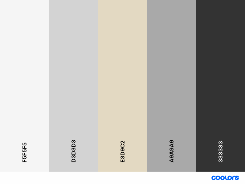 - لوحة ألوان محايدة ومحدودة: يعتمد بشكل أساسي على الألوان الهادئة مثل الأبيض، البيج، الرمادي، والأسود، مع إمكانية إضافة لمسات لونية بسيطة ومدروسة.