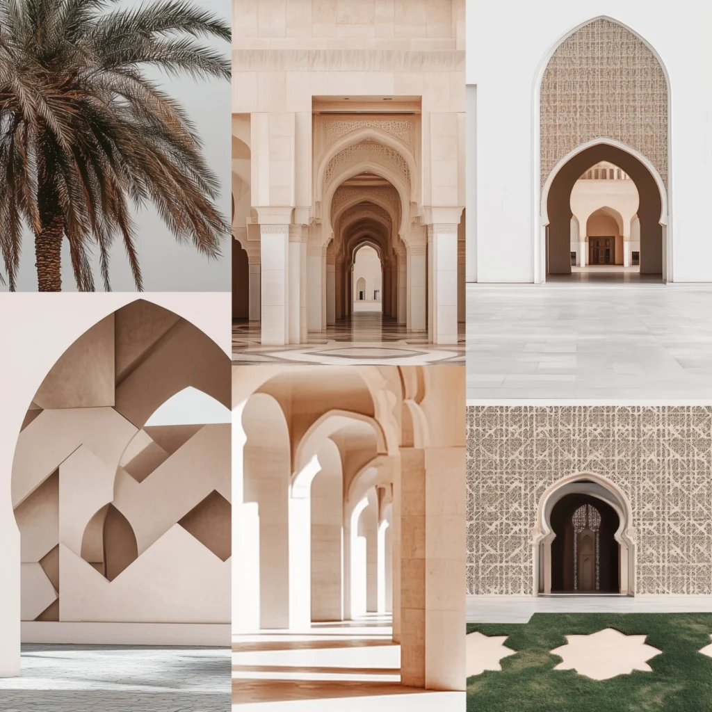 Architectural Elements: Showcasing arches, and courtyards that reflect classic Islamic architecture.